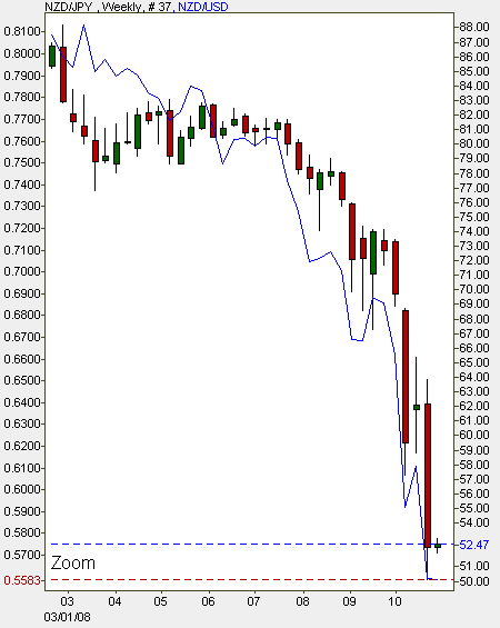 To see what happens to carry trade target/victim countries, take a look at the New Zealand Dollar as the Japanese Yen carry trade unwound recently: