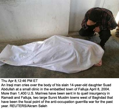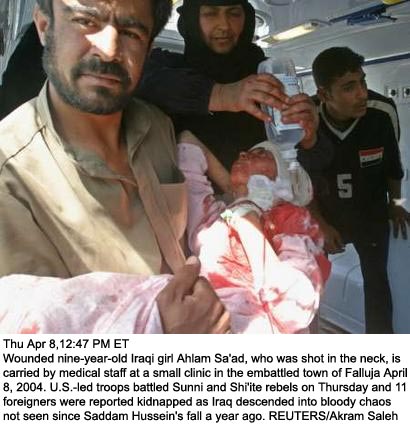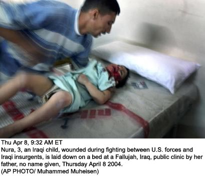 While You Were Sleeping: Active Suppression of Images Out of Iraq by U.S. MediaWARNING: YOU GET NO WARNING. OPEN YOUR EYES! The disconnect between what is happening in Iraq and what is being reported in the U.S. media is almost unbelievable. I watch media sources continuously and I don't see these images. I had to sift through hundreds of images on the photowire to find these. While the yammering of filthy liar Condoleezza Rice seems to be making news at the moment, I suggest that you pay attention to a few of the images from just the last two days in Iraq: Related: Photos from Falluja, Aljazeera News Crew Inside the Town
