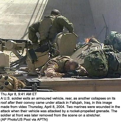 Bloody Chaos Engulfs Iraq: Fierce Fighting Rages, Foreigners Kidnapped :.It is increasingly difficult to get any details of what is happening in Iraq. Most of the reporting is being done from hotels in Baghdad. Meanwhile, the rest of the country is in open rebellion and chaos is the order of the day. Victory! Liberation! Democracy! The boneheads (such as U.S. Lt. Gen. Ricardo Sanchez) are quite right when they say this is nothing like Vietnam. Actually, the implications of this U.S. caused catastrophe are much more strategic and dire in nature than Vietnam could have ever been. The war in Iraq threatens to draw the entire region into a conflict that could easily touch off a world war: U.S.-led troops fought fierce battles with Sunni and Shi'ite rebels Thursday and a spate of kidnappings snared foreigners as Iraq descended into bloody chaos not seen since Saddam Hussein's fall a year ago.
