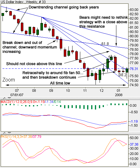 The strategic view still looks promising for dollar bears. Here’s a weekly chart: