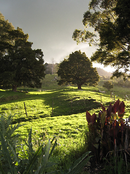 Rain, pasture, sunset