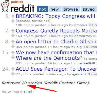 Thanks Greasemonkey and Reddit Content Filter authors.