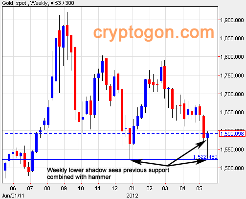 Update: Spot Gold Prints Weekly Bullish Hammer
