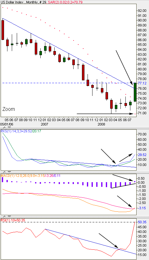 The parabolic SAR has been bearish since 2006. It just flipped to bullish on the August candle.