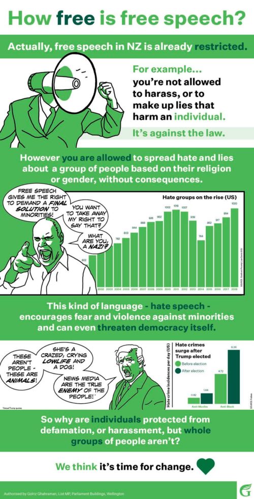 NZ is rapidly becoming a locked-down country with our means of self-protection being outlawed (guns) via staged false flag operations, and everyone afraid to say a peep or be thrown into jail. Even protesting against the acid thrown in faces or the beatings or murder of women by their brothers or fathers because those women have been raped or had “unapproved” boyfriends and thus inadvertently “shamed” their Muslim families, now falls under “hate speech” against a religion, and these Greens want to make it illegal to protest that kind of violent crap? Yes, let’s protect those who maim their women, because … “hate speech” is worse!? And then these Greens equate such things as protesting religious-based violence against women with “threatening democracy itself”. Unbelievable NWO semantic bullshit and extremely frightening for NZ’s future.