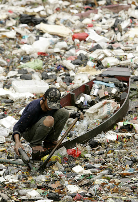 In an ironic twist to that situation you see above, the river is becoming so clogged with trash that the operation of the massive hydropower station at Lake Saguling is threatened. The lights could literally go out because of this. The factories would close.